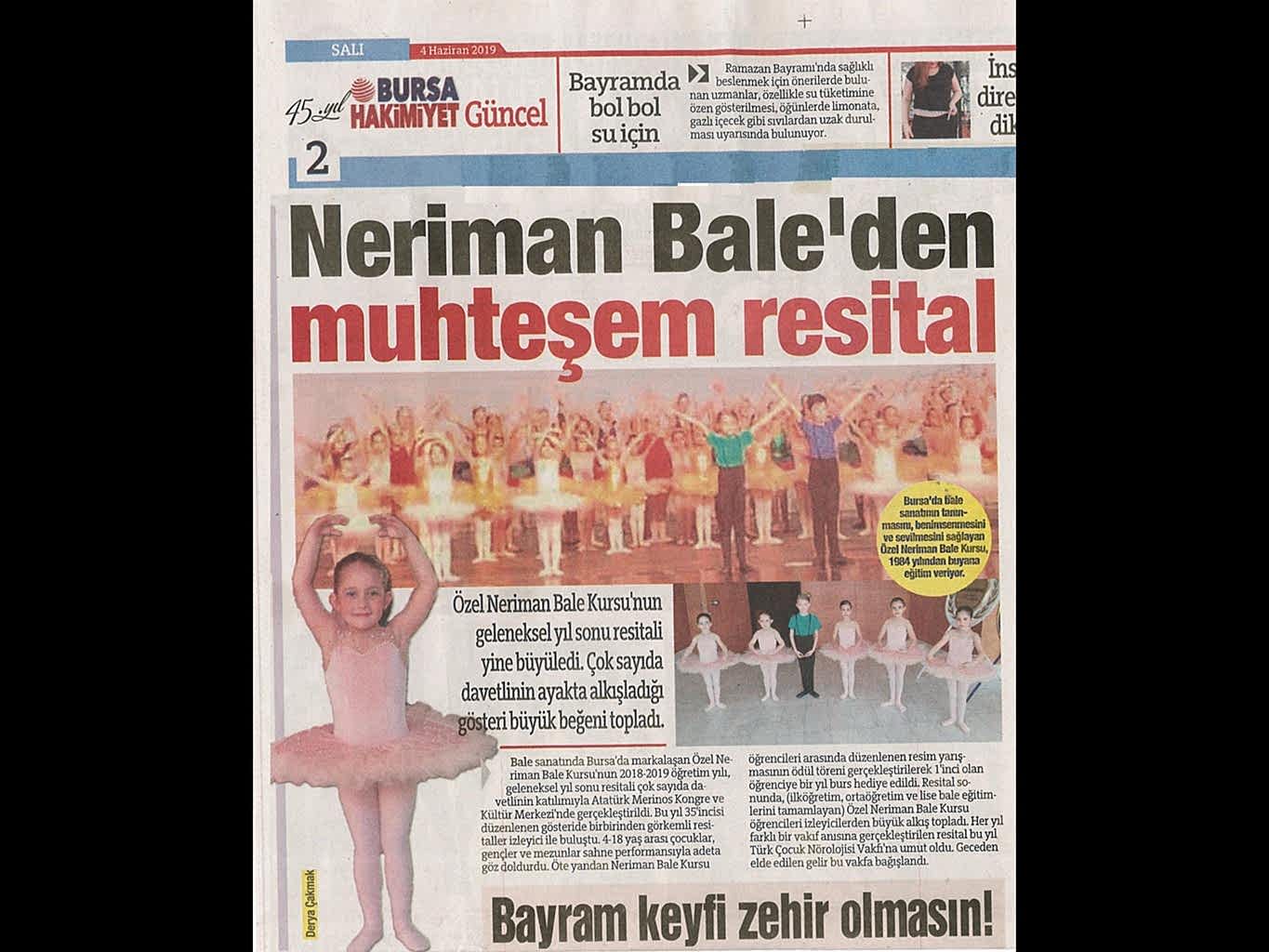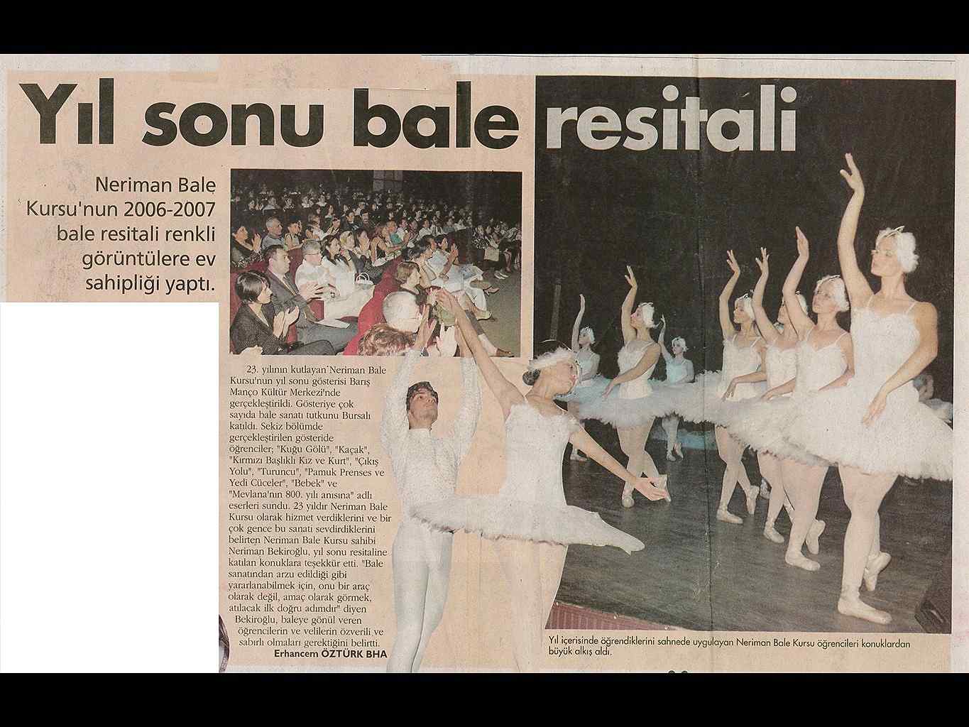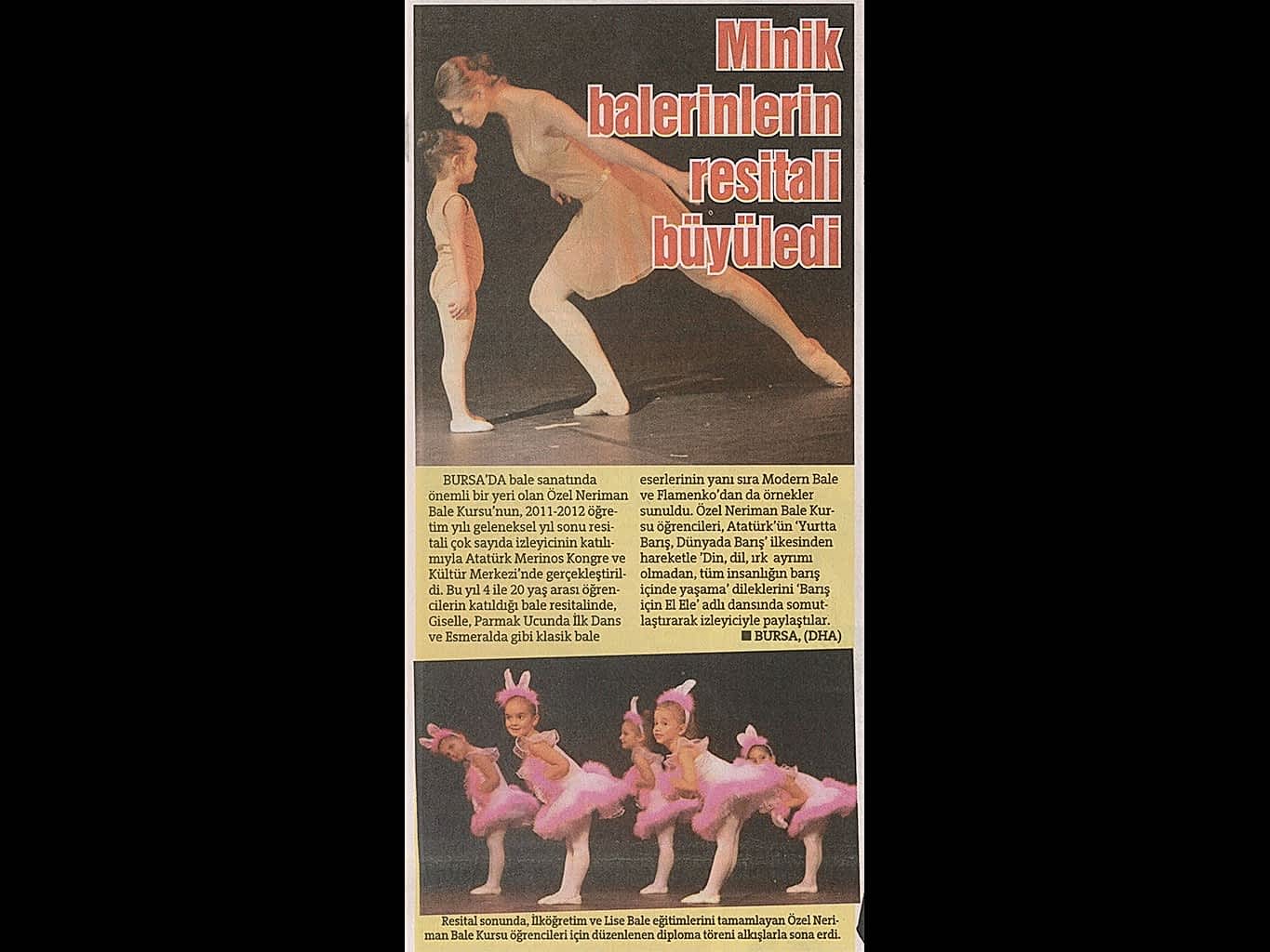 Yaşayan Bursa Neriman Bale’den yıl sonu resitali Bursa’da dans ve bale denildiğinde ilk akla gelen adres olan Neriman Bale Kursu geride bıraktığı yaklaşık 24 yılda gerçekleştirdikleri ile kentin kültür yaşamında önemli bir figür oldu.