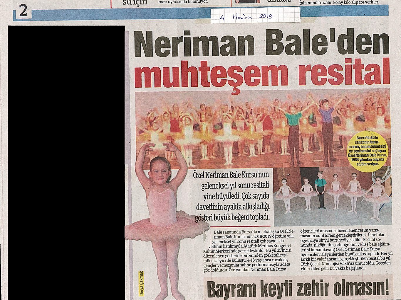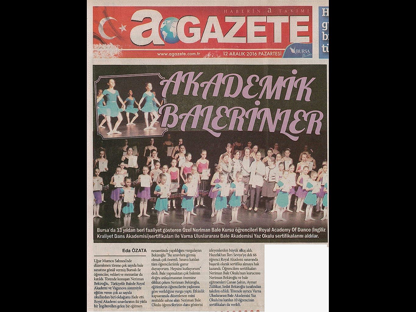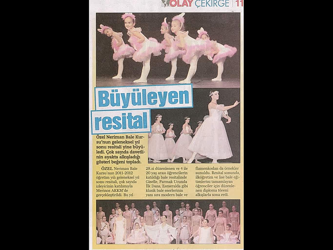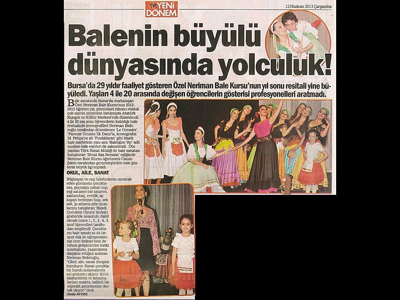Yaşayan Bursa Neriman Bale’den yıl sonu resitali Bursa’da dans ve bale denildiğinde ilk akla gelen adres olan Neriman Bale Kursu geride bıraktığı yaklaşık 24 yılda gerçekleştirdikleri ile kentin kültür yaşamında önemli bir figür oldu.