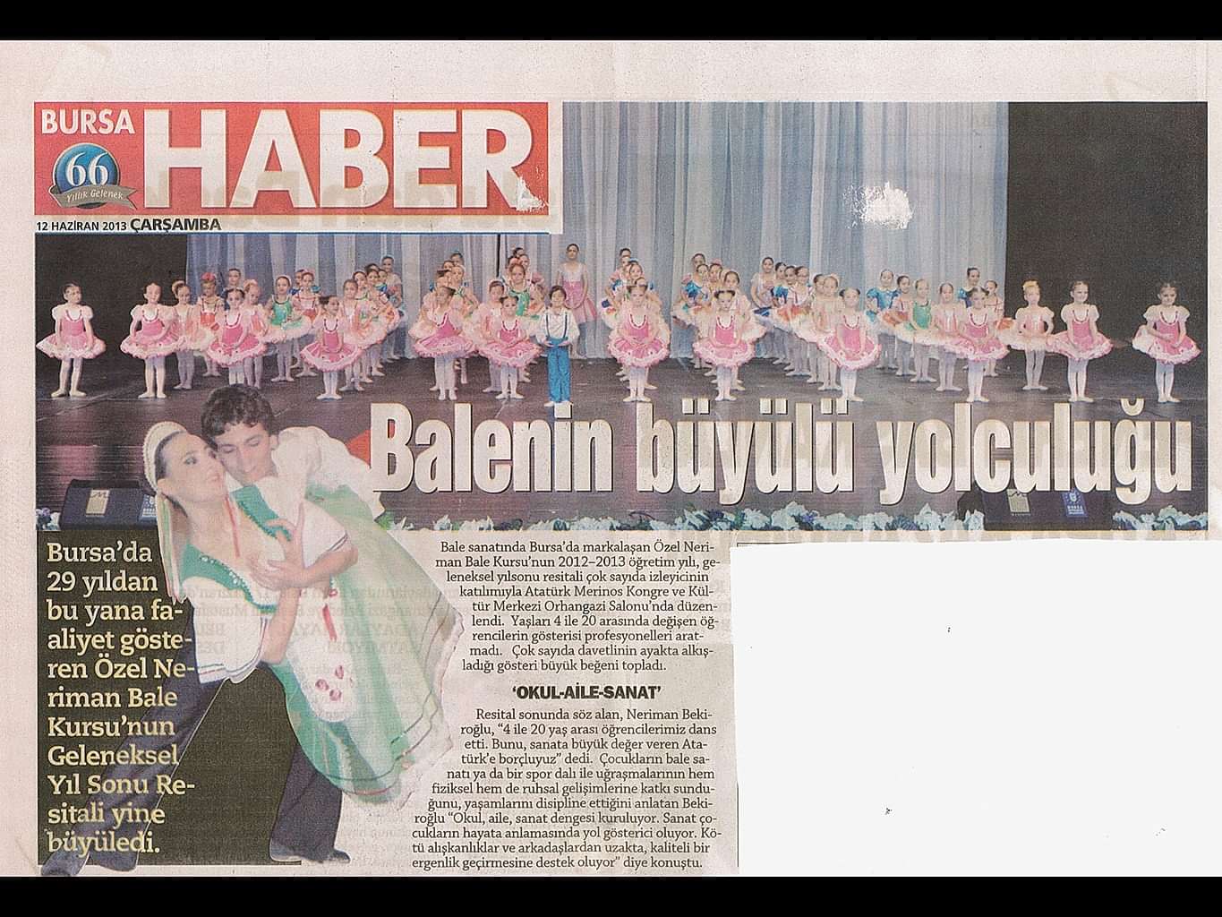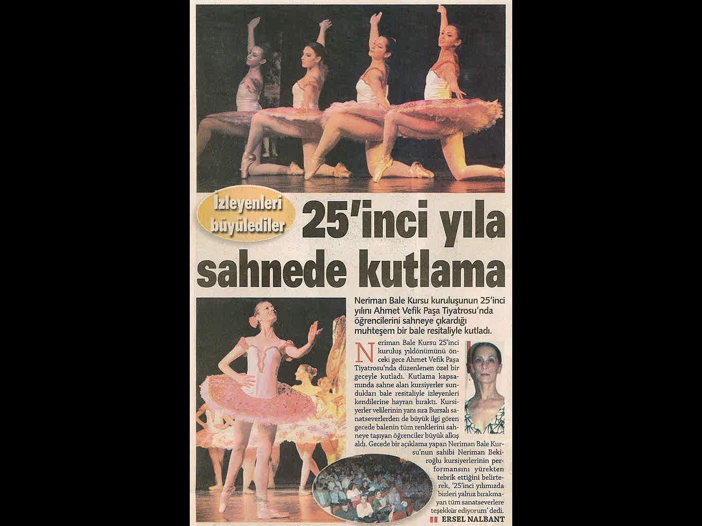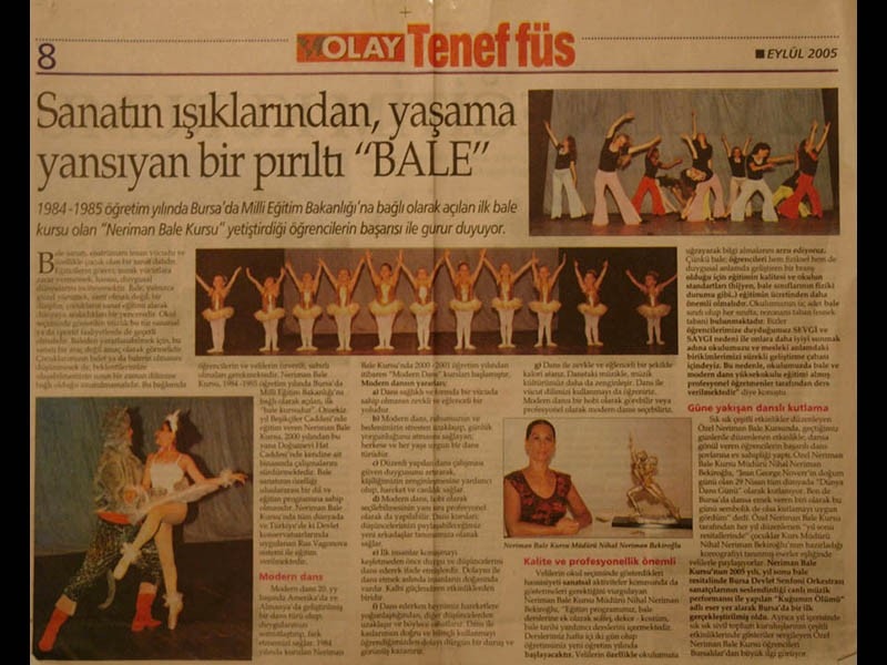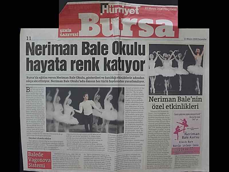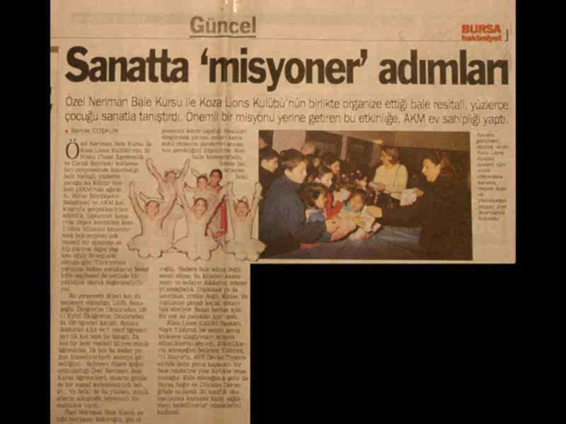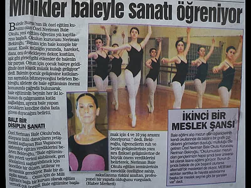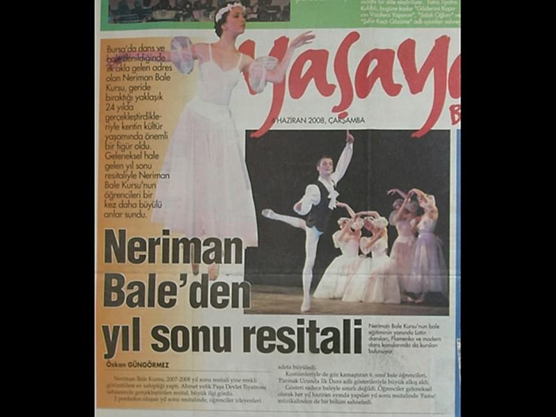 Sanattan yaşama yansıyan pırıltı... 1984-1985 öğretim yılında Bursa’da Milli Eğitim Bakanlığı’na bağlı olarak açılan ilk bale kursu olan ‘Neriman Bale Kursu’ yetiştirdiği öğrencilerin başarısı ile gurur duyuyor.