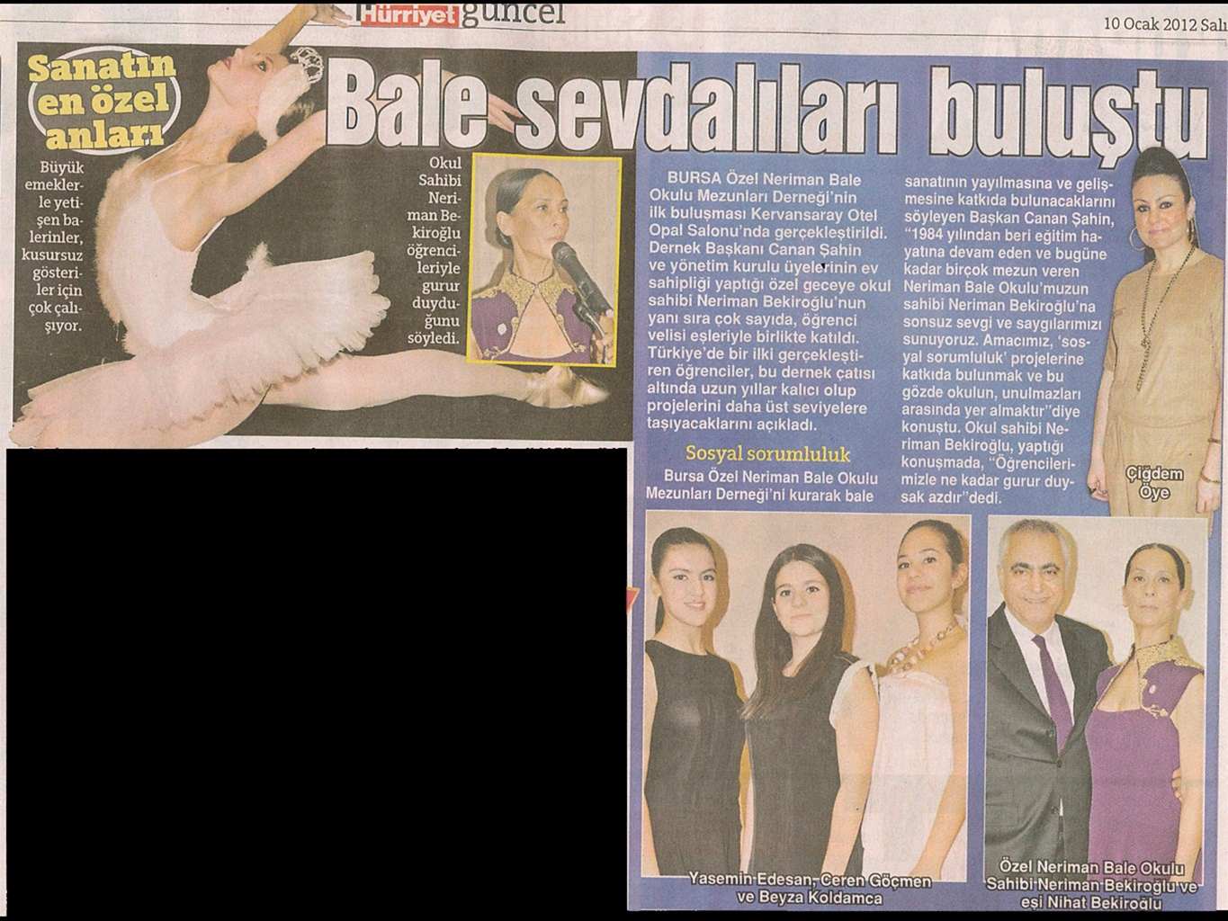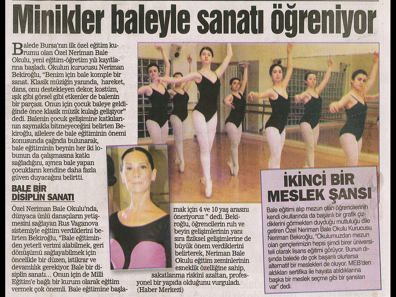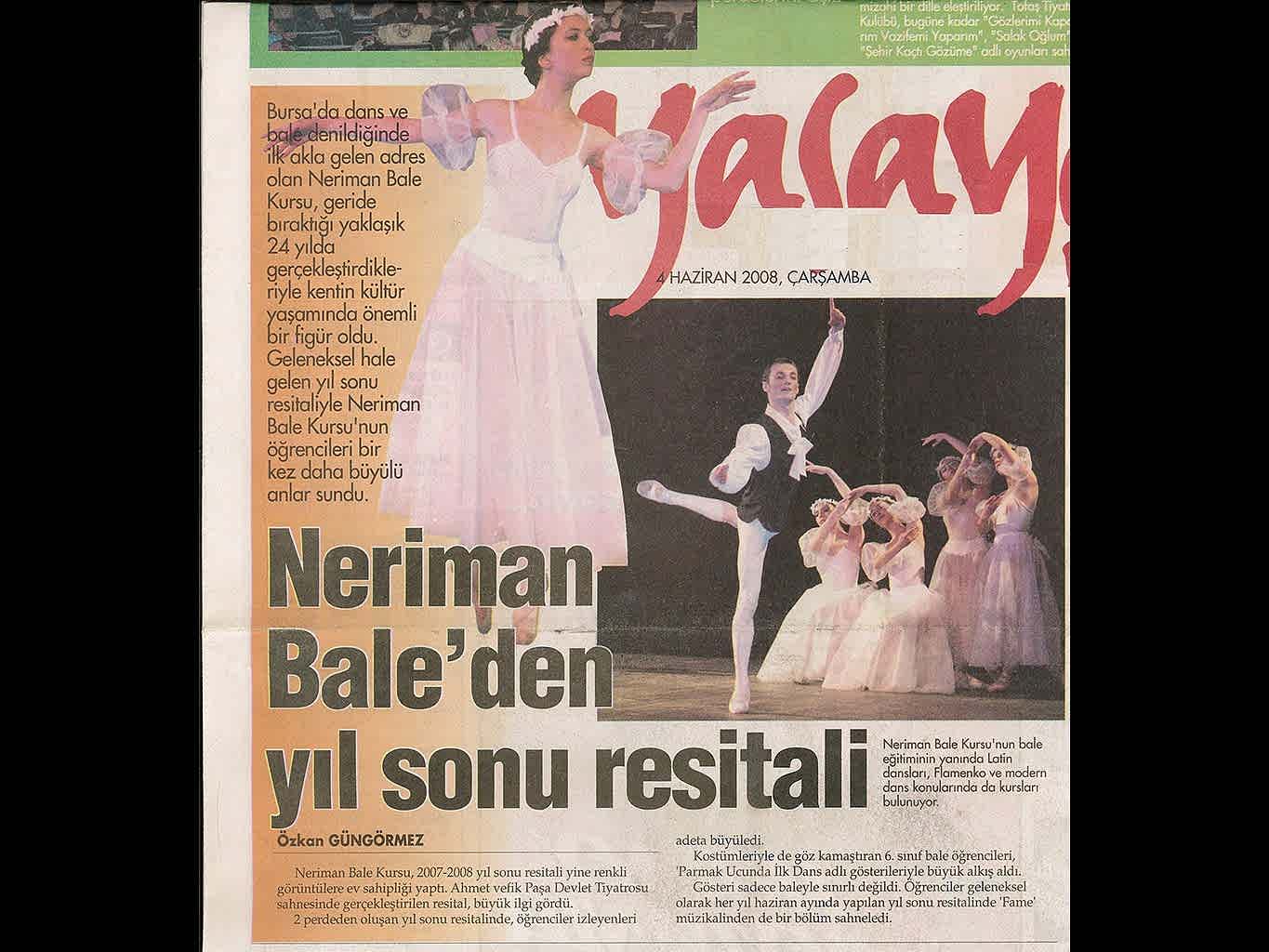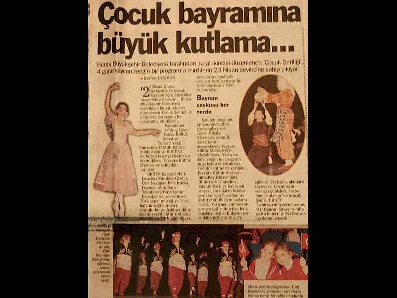 Sanattan yaşama yansıyan pırıltı... 1984-1985 öğretim yılında Bursa’da Milli Eğitim Bakanlığı’na bağlı olarak açılan ilk bale kursu olan ‘Neriman Bale Kursu’ yetiştirdiği öğrencilerin başarısı ile gurur duyuyor.