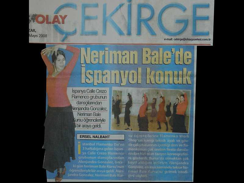 Neriman Bale’de İspanyol konuk.İspanya Calle Crezo Flamenco gurubunun dansçılarından Alenjandra Gorizalez,Neriman Bale Kursu öğrencileri ile bir araya geldi.