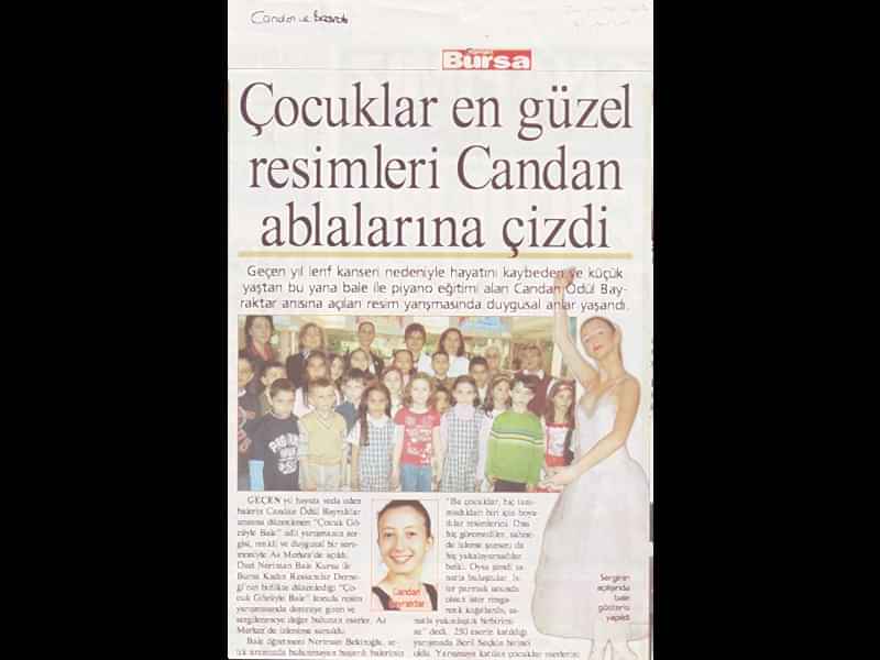 Çocuklar en güzel resimlerini Candan ablalarına çizdi Geçen yıl lenf kanseri nedeni ile hayatını kaybeden ve küçük yaştan buyana bale ve piyano eğitimi alan Candan Ödül Bayraktar anısına açılan resim yarışmasında duygusal anlar yaşandı.