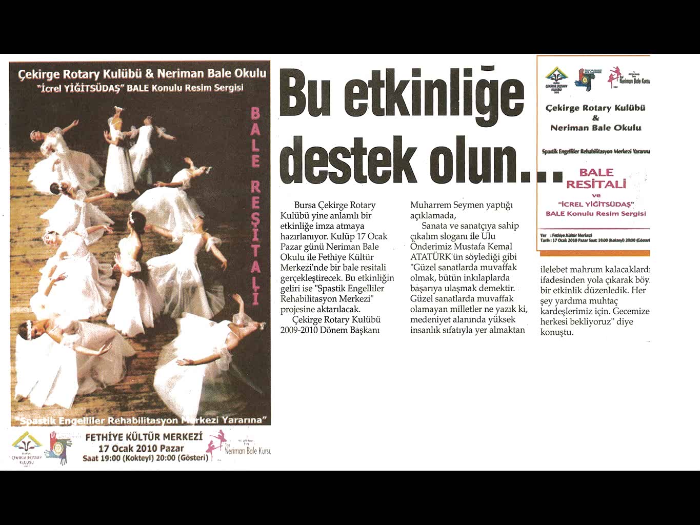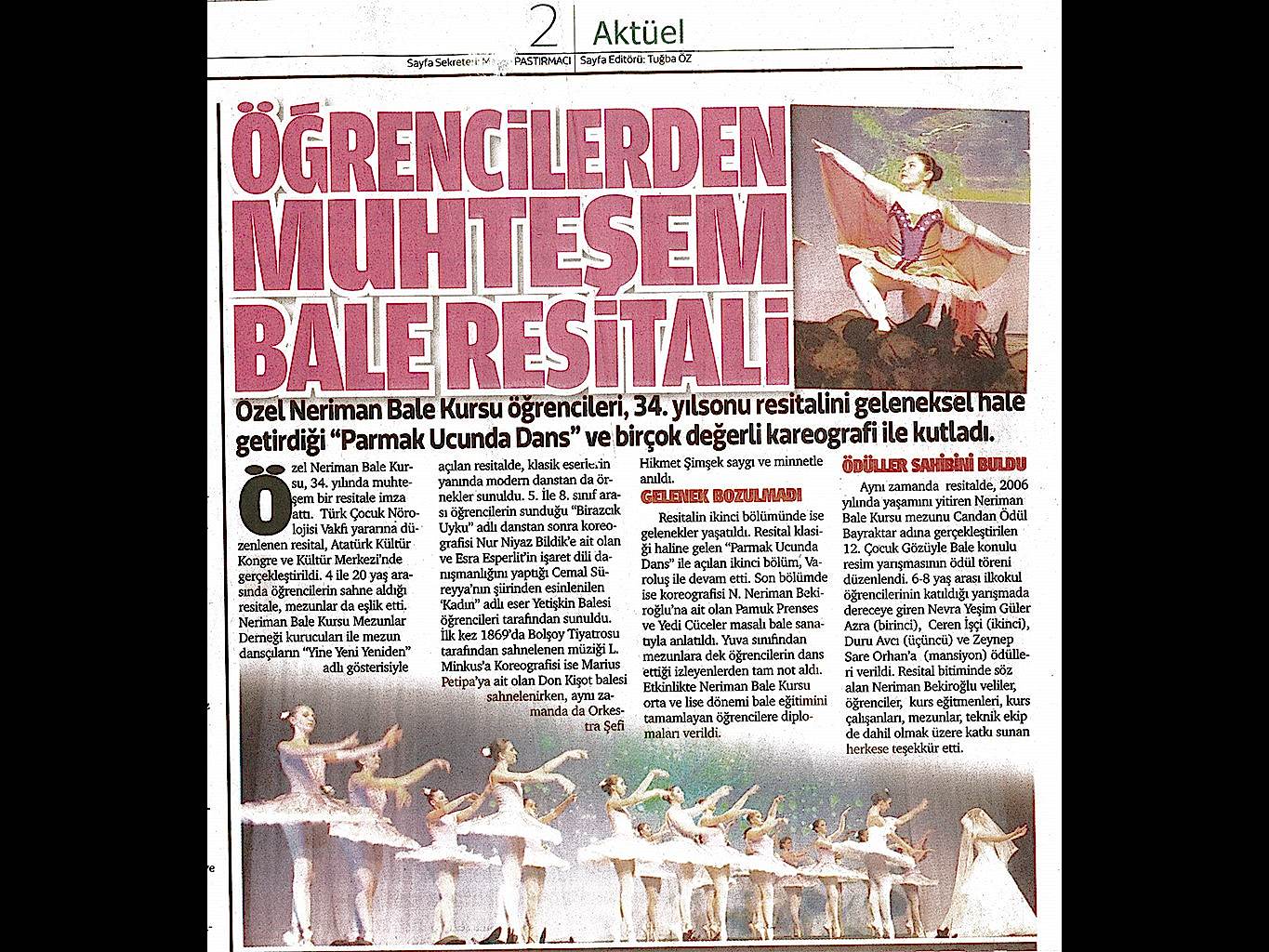 Sanatta ‘misyoner’ adımları… Özel Neriman Bale Kursu ile Koza Lions Kulubu’nun birlikte organize ettiği bale resitali,yüzlerce çocuğu sanatla tanıştırdı.Önemli bir misyonu yerine getiren bu etkinliğe, AKM ev sahipliği yaptı.