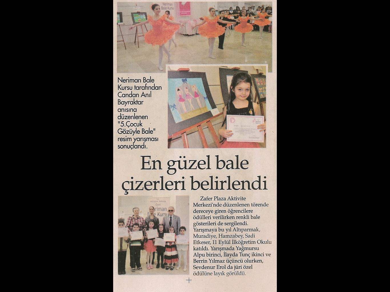 Çocukların Gözü İle Bale Geçtiğimiz yıl hayata veda eden balerin Candan Ödül Bayraktar anısına düzenlenen “Çocukların Gözü İle Bale” adlı yarışmanın sergisi önceki gün renkli bir seramoniyle As Merkezde açıldı.