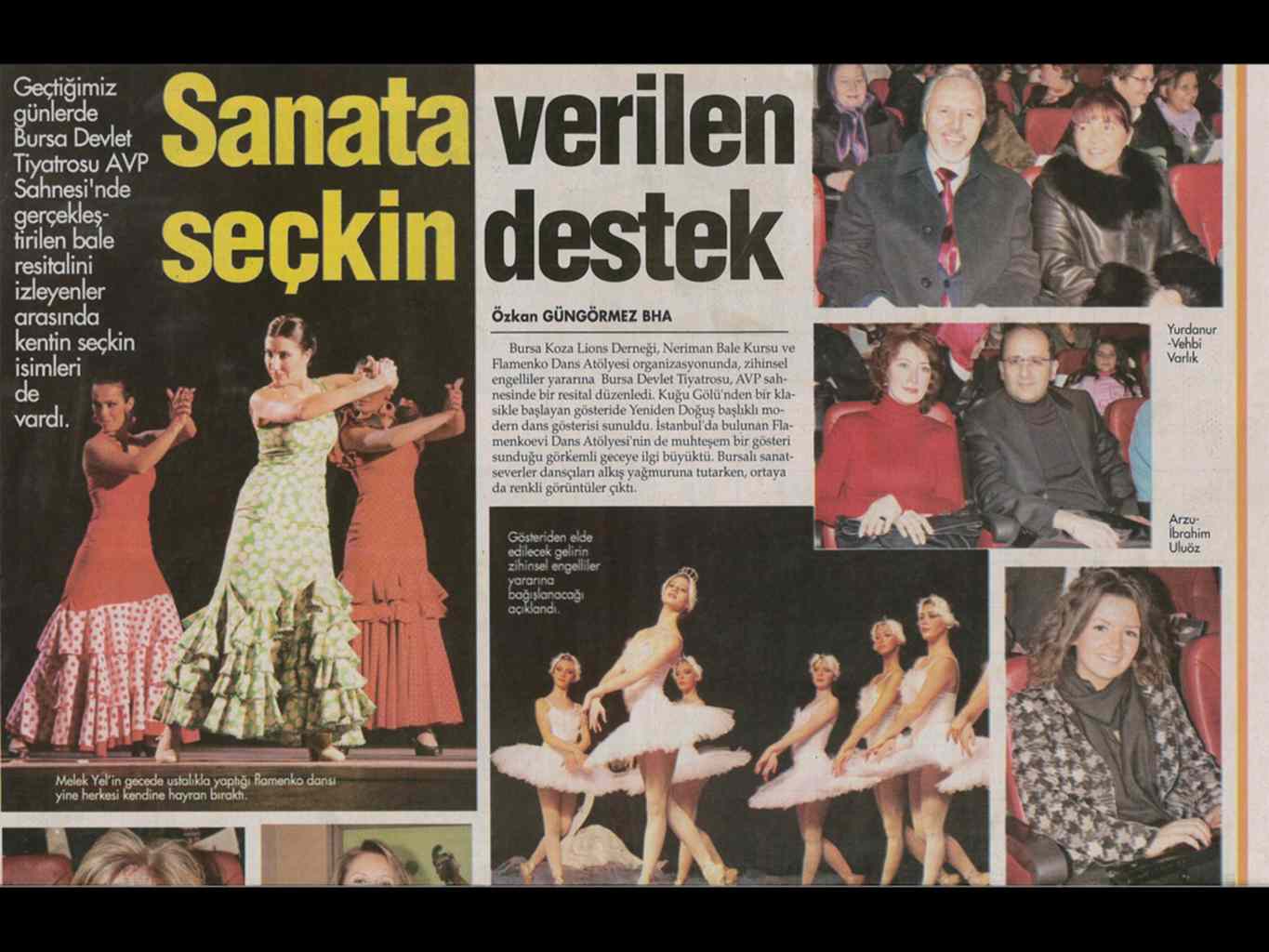 Sanata Verilen Seçkin Destek Geçtiğimiz günlerde Bursa Devlet Tiyatrosu AVP Sahnesi’nde gerçekleştirilen bale resitalini bale resitalini izleyenler arasında kentin seçkin isimleride vardı.
